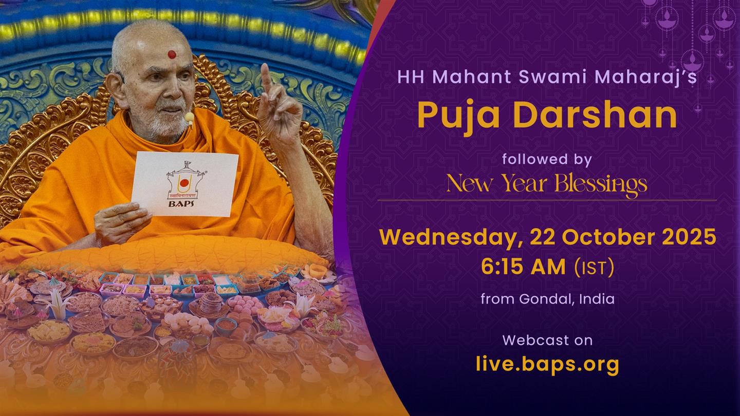 Live Webcast of HH Mahant Swami Maharaj's Puja Darshan and New Year's Blessings, Gondal, India