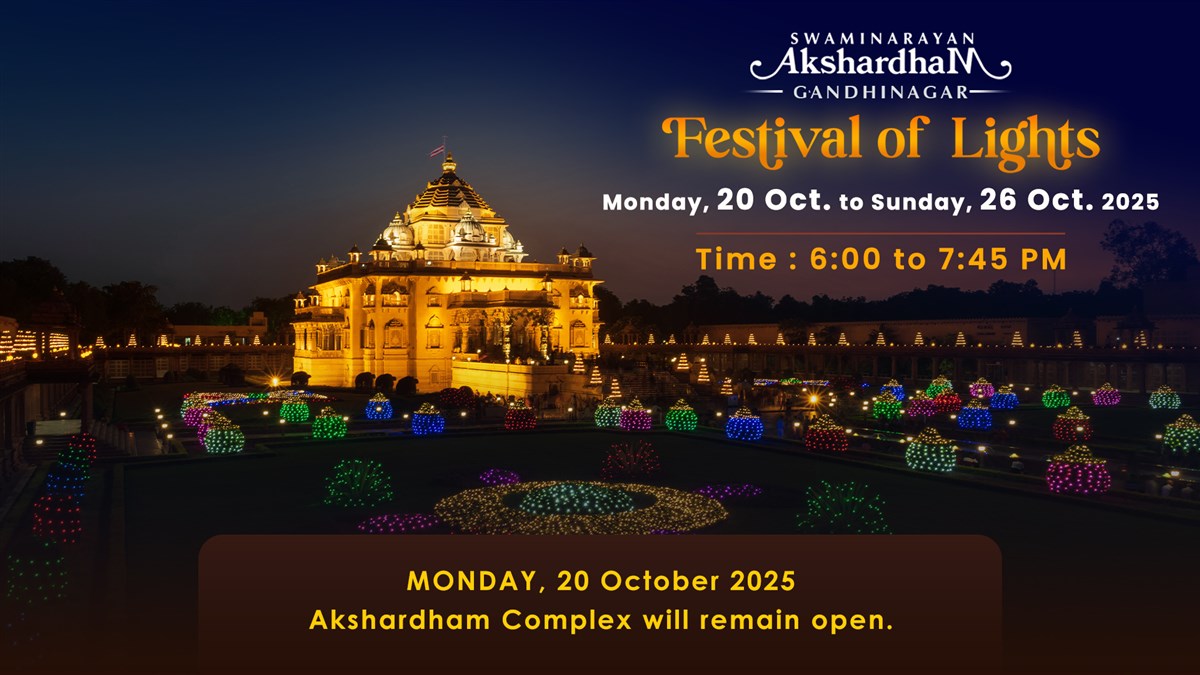 The holy festival of Diwali celebrates the attainment of enlightenment and freedom from the darkness of ignorance. Every year, for the past 33 years, Swaminarayan Akshardham has celebrated this auspicious occasion by lighting 10,000 traditional lamps. This majestic Festival of Lights inspires every human being to illuminate their life by lighting the lamps of virtues such as truth, kindness, non-violence, righteousness, spiritual knowledge, worldly detachment, devotion to God, and others.