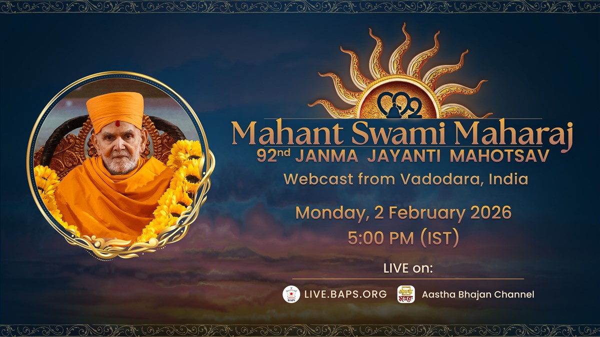 Live Webcast and Telecast of Mahant Swami Maharaj's 92nd Birthday Celebration, Atladara (Vadodara), India