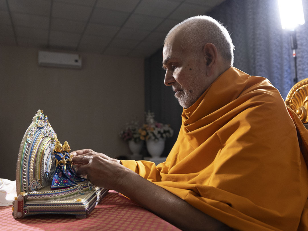 દર્શન કરતાં કરતાં સ્વામીશ્રી મંદિરની રૂપચોકીમાં પધાર્યા. અહીં એકત્રિત થયેલા સંત-પાર્ષદો સ્વામીશ્રીનાં દર્શન કરી રહ્યા હતા.