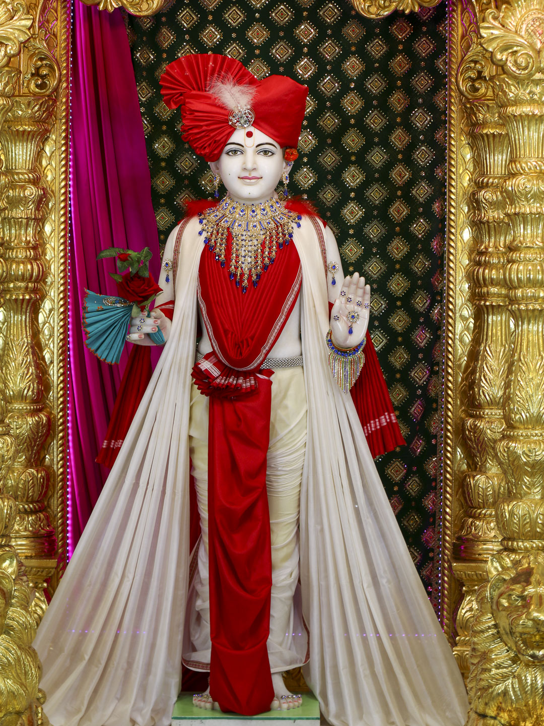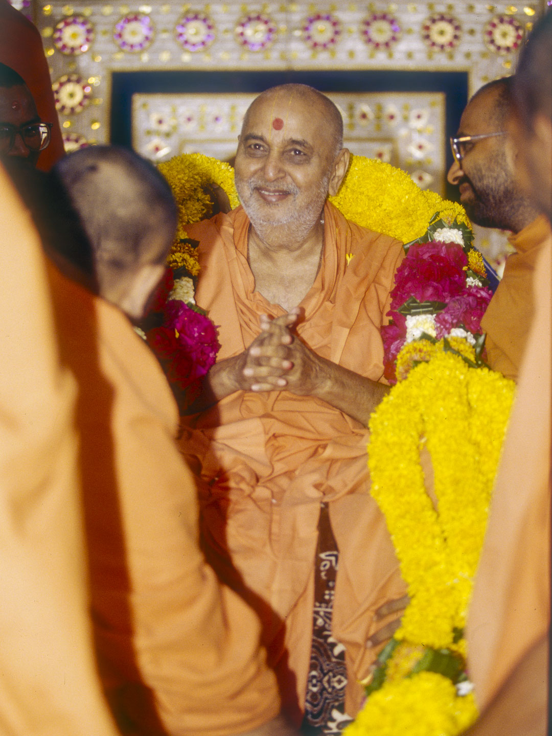 સ્વામીશ્રી રોજના ક્રમ પ્રમાણે હનુમાનજી-ગણપતિજીનાં દર્શન કરીને સભામંડપ તરફનાં મંદિરનાં પગથિયાંની પગથારે આવ્યા ને સૌને દર્શનદાન આપ્યાં. આ પગથિયાંની નીચેની પગથાર ઉપર ચાંદલોડિયાનો રવિ નામનો એક પ્રજ્ઞાચક્ષુ કિશોર બેઠો હતો. સ્વામીશ્રી જ્યારે ત્યાં પધાર્યા ત્યારે તેઓની દૃષ્ટિ આ પ્રજ્ઞાચક્ષુ કિશોર ઉપર પડી. સ્વામીશ્રીએ ગુલાબનું પુષ્પ હાથમાં લઈને એ રીતે નાખ્યું કે પુષ્પ સીધું જ રવિના ખોળામાં જઈને પડ્યું અને ત્યારે જ રવિનું ધ્યાન ગયું કે સ્વામીશ્રી એના તરફ દૃષ્ટિ કરી રહ્યા છે.