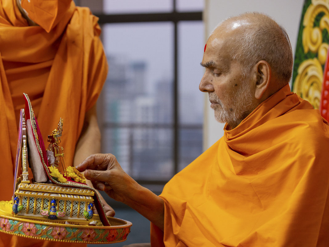 હસતાં હસતાં સ્વામીશ્રી કહે : ‘તો બરાબર છે. બાથરૂમમાં સંતાયા એટલે ન જ મળે ને !’ આટલું કહીને સ્વામીશ્રીએ ચુનીભાઈ ચાતુર્વેદીની વાત કરી. એટલે યોગીસ્વરૂપ સ્વામી કહે : ‘હું એમને વાત કરું છું. આપ એમને સંભારો છો, એ સાંભળશે તો રાજી થઈ જશે. ગાડીની વ્યવસ્થા પણ અહીંથી કરી દઈશું.’