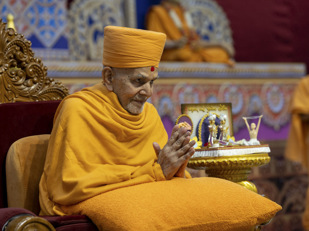 આટલું કહીને સ્વામીશ્રી ગાવા લાગ્યા : માન-અપમાન મેં એકતા, સુખ-દુઃખ મેં સમભાવ; હાંજી ભલા સાધુ...’ યોગીજી મહારાજ આ કીર્તન ઘણું ગાતા. ‘મને આમ થયું ને મને તેમ થયું, મને આ મળ્યું ને પેલું ન મળ્યું,’ એ બધું થાય જ નહીં. માન-અપમાનમાં એકતા જ રહે. માન મળે તોય ભગવાનની કૃપા અને અપમાન થાય તોય ભગવાનની ઇચ્છા. દુઃખ આવે કે સુખ આવે, એની ઇચ્છા સિવાય કાંઈ જ થતું નથી. આવો વિચાર હોય તો દુઃખ થાય જ નહીં, અફસોસ થાય જ નહીં.’