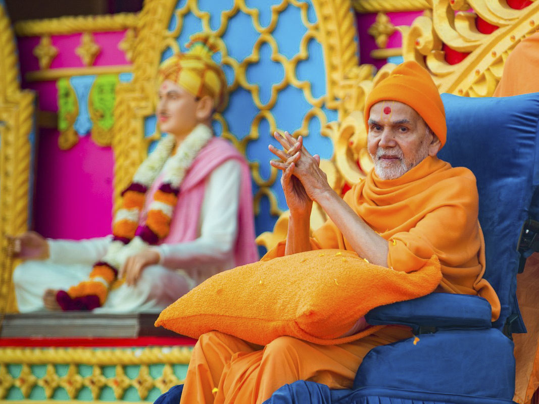 ઠાકોરજીનાં દર્શન કરી સ્વામીશ્રી લિફ્ટમાં નીચે પધાર્યા ત્યારે એક યુવકનો ડ્રમસેટ પ્રસાદીનો કરવા માટે રાખ્યો હતો. સ્વામીશ્રીએ એ ડ્રમસેટ ઉપર પુષ્પ પધરાવ્યાં પછી ડ્રમસેટ ઉપર જ પડેલા ડ્રમસ્ટિકને હાથમાં લઈને ચાર-પાંચ જુદા જુદા પ્રકારના ડ્રમસેટ ઉપર શિવમણિની સ્ટાઈલમાં આઘાત આપીને દિવ્ય નાદ પ્રગટાવ્યો. છેલ્લે મોટા ગોંગ ઉપર પણ સ્ટિક મારીને ઝંકાર કર્યો. સૌને સ્મૃતિ આપી.