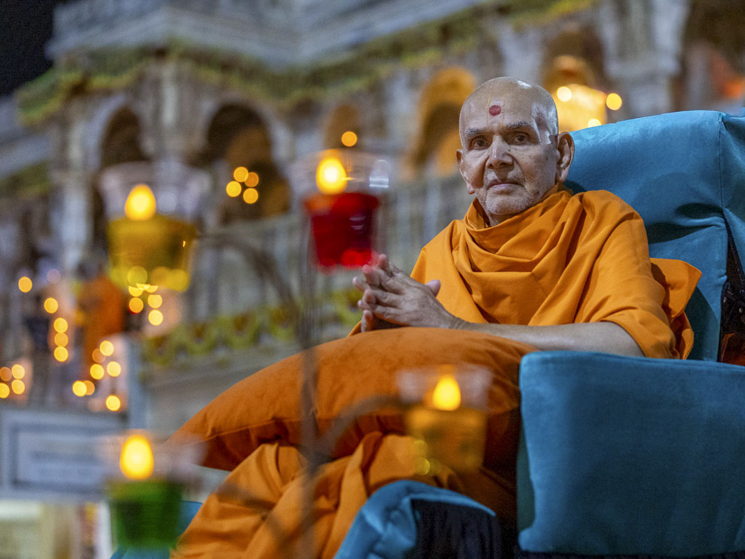 હનુમાનજી-ગણપતિજીનાં દર્શન સ્વામીશ્રી કરી રહ્યા હતા. આજે બ્રહ્મસેતુ સ્વામી હાથમાં બોર્ડ લઈને ઊભા હતા. બોર્ડમાં લખ્યું હતું : ‘I am Aatma, I am Akshar, I am Pramukh Swami.’