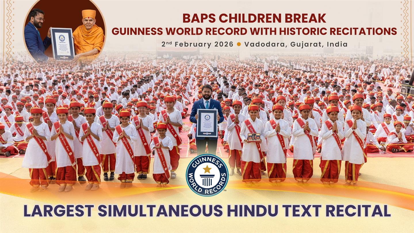BAPS Children Break Guinness World Record with Historic Recitations, Atladara (Vadodara), India