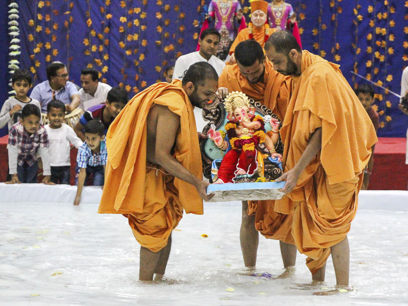 Thakorji swings in decorated hindolas (swings) during the month of Ashadh, at BAPS Swaminarayan centers around the world.