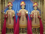 The adornment of the murti of Bhagwan Swaminarayan / Shri Harikrishna Maharaj with sandalwood paste ("chandan na wagha") is an annual feature in Swaminarayan mandirs, during the month of Vaishakh.