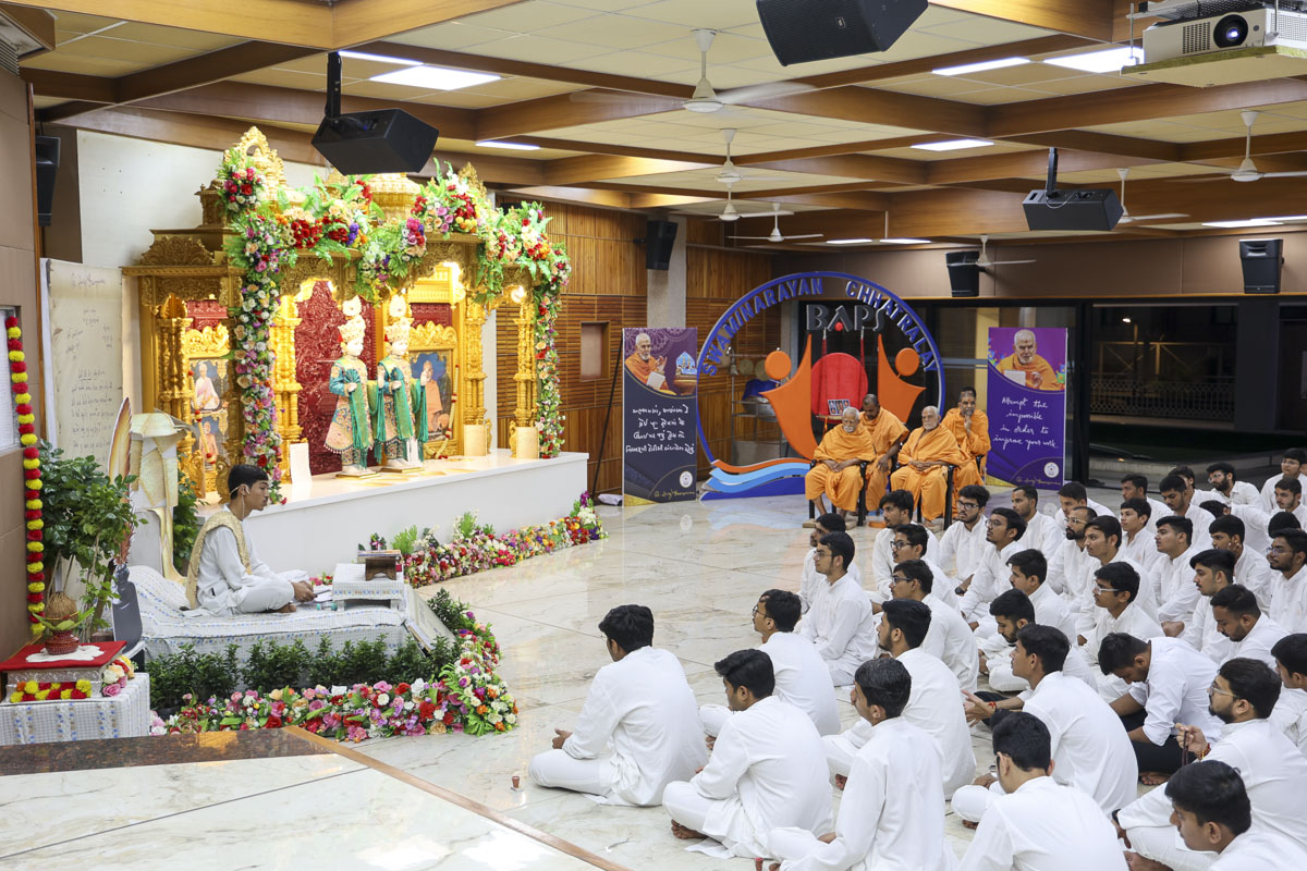 Yuvak-Yuvati Parayans 2025: Likhitan Sadhu Keshavjivandas at BAPS Centers Across India.