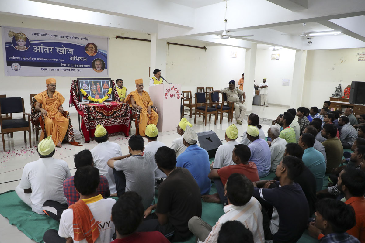 Under the auspices of the Pramukh Swami Maharaj Centenary Celebrations, a special assembly was held for inmates of the Central Jail in Surat.