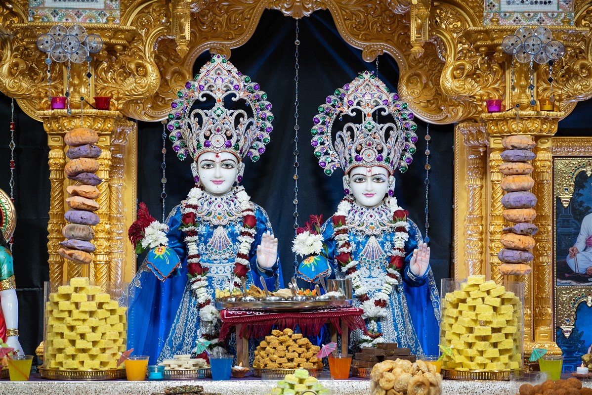 Diwali and Annakut Celebration was a unique and awe-inspiring sight of devotion where hundreds of different traditional Indian foods were offered to Bhagwan as a devotional gratitude for the past year and to seek blessings for the New Year ahead.