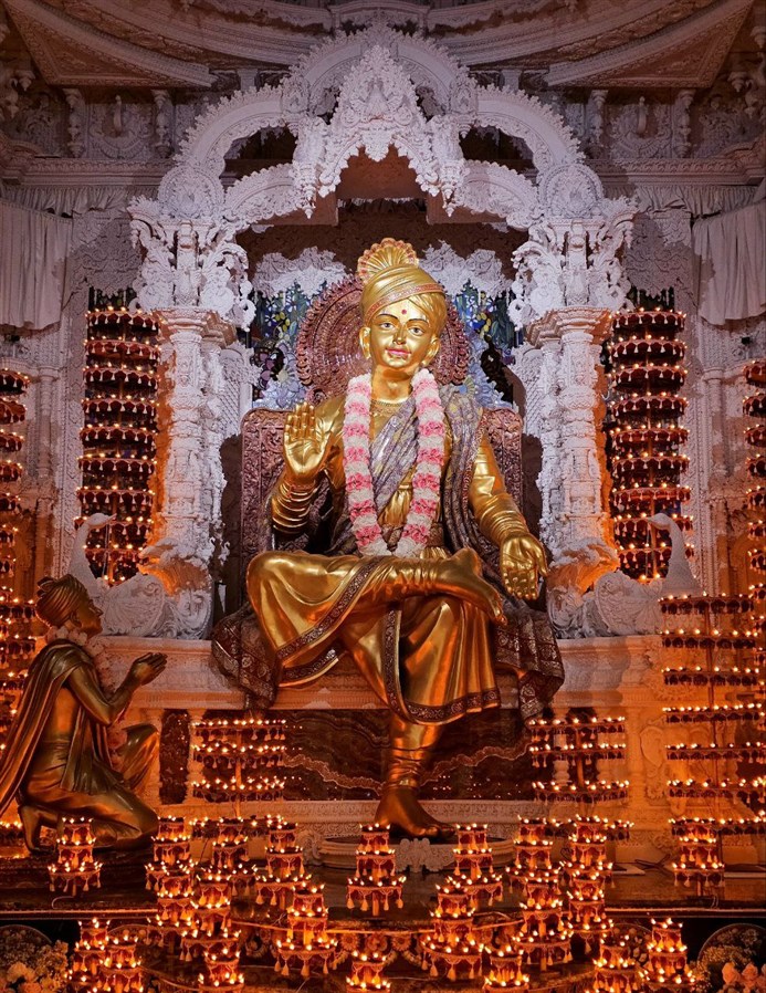 The day following Diwali is the beginning of the Hindu New Year. The Hindu New Year is traditionally celebrated with the Annakut – literally meaning, a mountain of food. Every year thousands of vegetarian delicacies are offered in devotional gratitude for the past year and to seek blessings for the New Year ahead. The Annakut offering includes snacks, sweets, pickles, spicy dishes, salads, fruit drinks and other items devotionally prepared by devotees. We cordially invite you for darshan of the Annakut with family and friends.