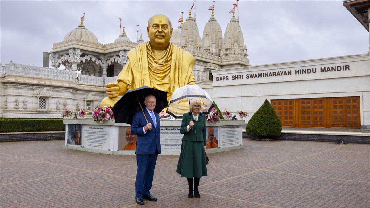 Their Majesties King Charles III and Queen Camilla visited BAPS Shri Swaminarayan Mandir in Neasden, London – popularly known as ‘Neasden Temple’ – to mark the Mandir’s 30th anniversary, coinciding with Diwali and the Hindu New Year celebrations.