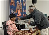 In the following session, ‘Ghanshyam at School’, the hall was divided into six story telling corners with each story narrating a moral that shishus could learn from, e.g. not to steal, not to harm any animals, the importance of Ekadashi, etc. For the 0-3 year olds, this session also aimed to introduce the behaviour of an ideal child through a story-based performance on vivek and avivek in any environment.
