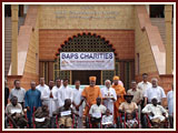 Thereafter a short prayer was said before the murti of Shri Harikrishna Maharaj for peace and prosperity of recipient individuals. The sadhus then donated the wheelchairs.