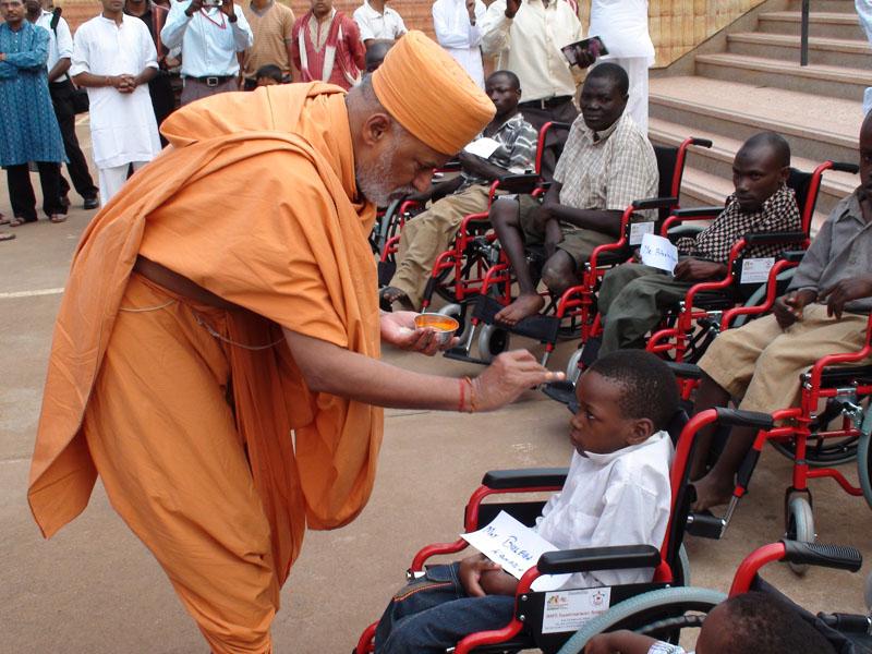 After the successful 50th patotsav celebration of Kampala Mandir on 14 June 2010, BAPS donated 43 wheelchairs to needy local children and adults.