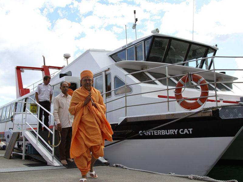The two-day Mandir Mahotsav to celebrate the opening of the new BAPS Shri Swaminarayan Mandir in Christchurch commenced on 24 February 2012. The murtis to be consecrated in the mandir were paraded around Lyttelton Bay in a colourful boat cruise to bless the city. Many devotees participated in the boat cruise with the sounds of joyous bhajans and music.