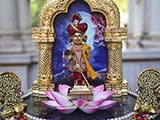 The adornment of the murti of Bhagwan Swaminarayan / Shri Harikrishna Maharaj with sandalwood paste ("chandan na wagha") is an annual feature in Swaminarayan mandirs, during the month of Vaishakh.