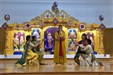 That afternoon, Swamishri graced the assembly marking his 75th Diksha Din to initiate these 28 youth into the sadhu-fold. Pujya Viveksagar Swami gave each initiate a new kanthi. Pujya Doctor Swami gave each initiate their new saffron uppercloth. Then Swamishri gave each new sadhu his diksha mantra and blessings while the new initiate’s name was announced to the assembly. Then the newly initiated sadhus continued to Pujya Mahant Swami and Pujya Ghanshyamcharan Swami to receive their paghs and auspicious sandalwood markings. Everyone present was overjoyed to witness Swamishri’s divine mood and the sacrifice and devotion he has inspired in these newly initiated sadhus.