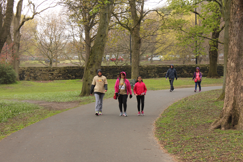 After the opening ceremony, walkers, joggers and runners moved along the route from the Mandir to Kirkstall Abbey Park and back to the Mandir.