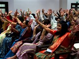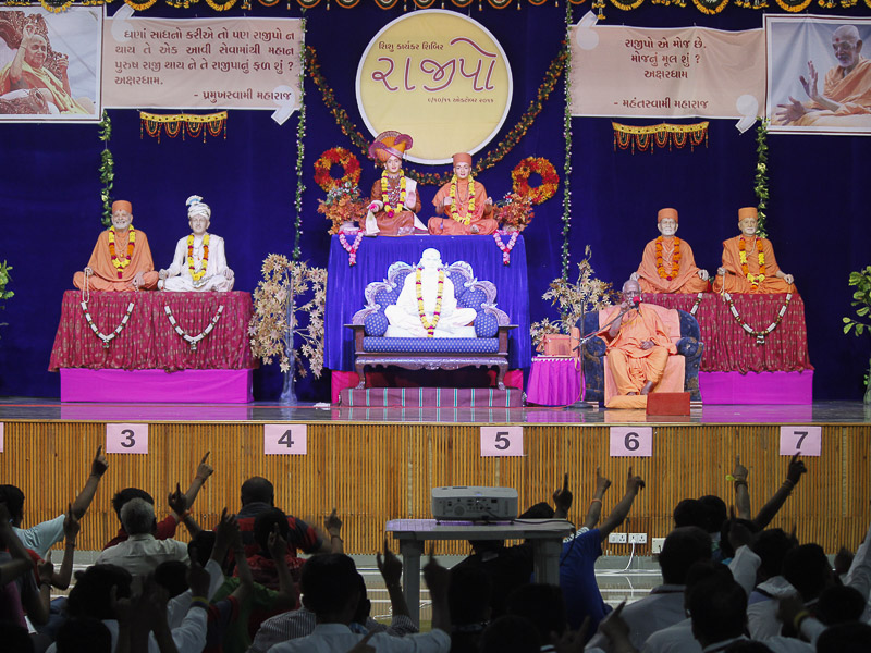 Param Pujya Mahant Swami Maharaj blessed the convention with a video message highlighting that rajipo is when God and guru are overjoyed. What is the value of their joy? Akshardham.