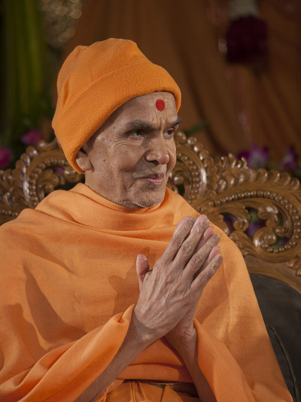 Param Pujya Mahant Swami Maharaj greets devotees with 'Jai Swaminarayan'