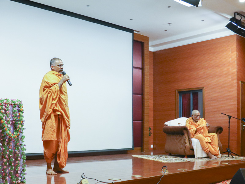 Pujya Bhaktipriya Swami (Kothari Swami) lights the inaugural lamp