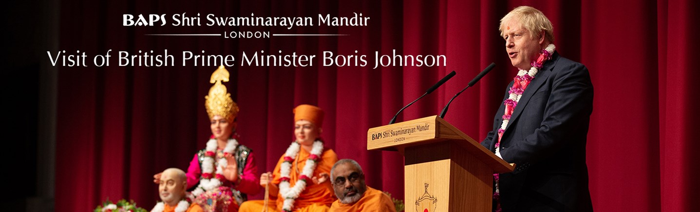 British Prime Minister Boris Johnson visited BAPS Shri Swaminarayan Mandir, London – popularly known as the ‘Neasden Temple’ – on Saturday 7 December 2019. The visit coincided with the 98th birthday celebrations of His Holiness Pramukh Swami Maharaj, the inspirer and creator of the Mandir.