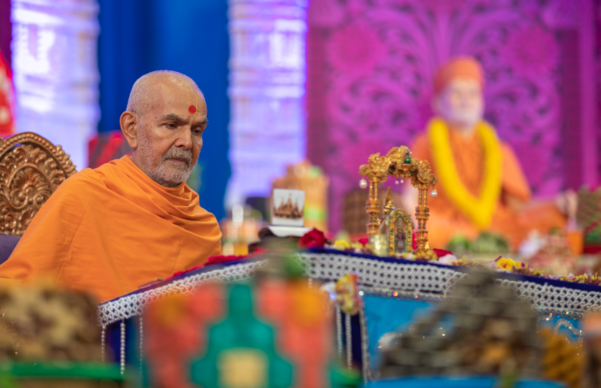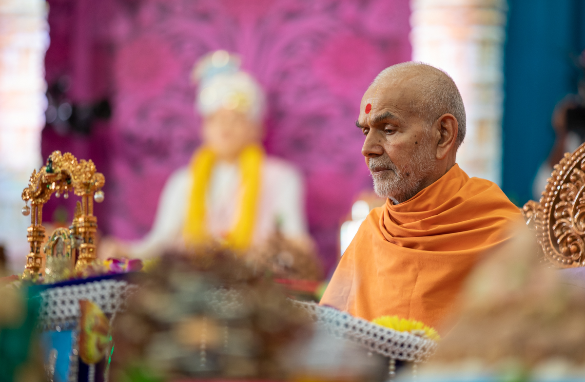 Swamishri engrossed in darshan of Shri Ghanshyam Maharaj