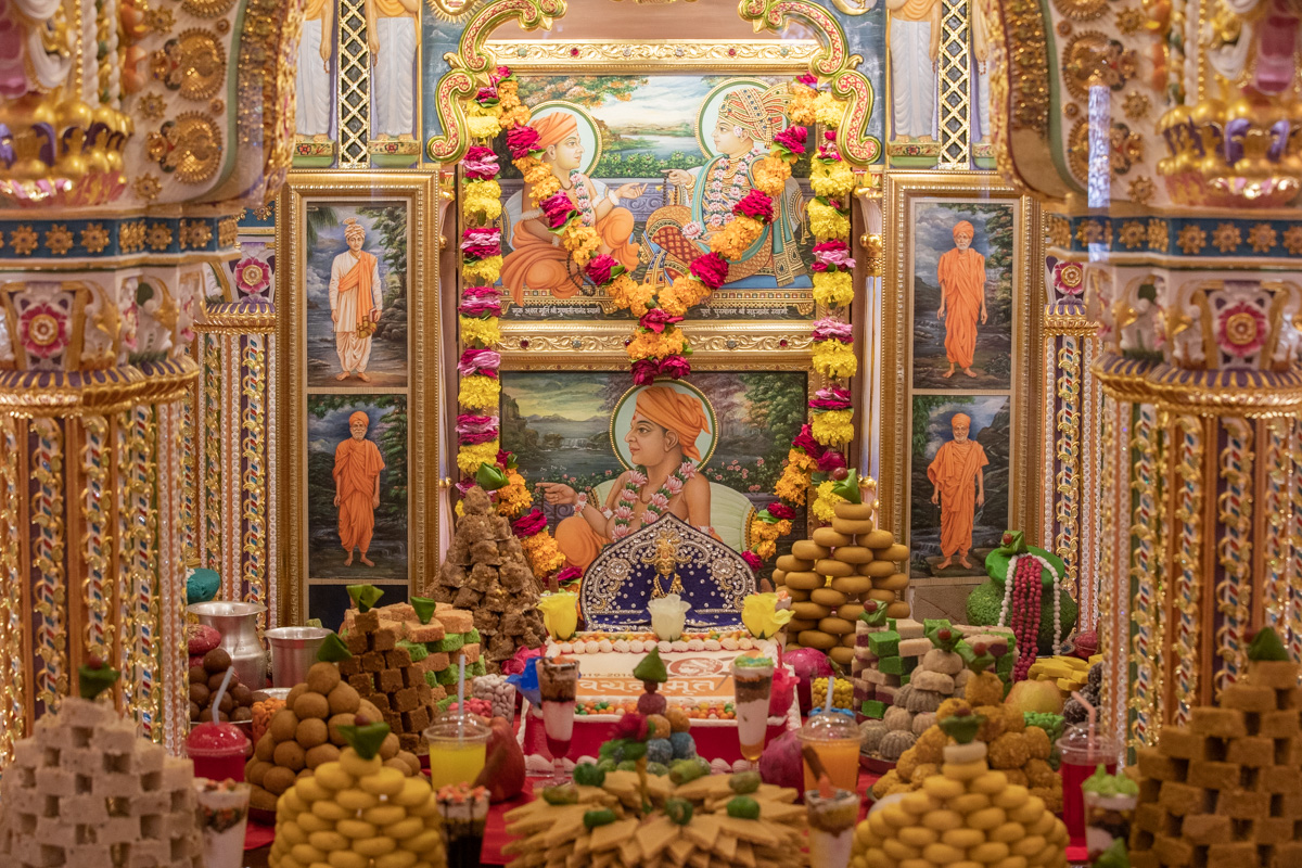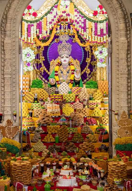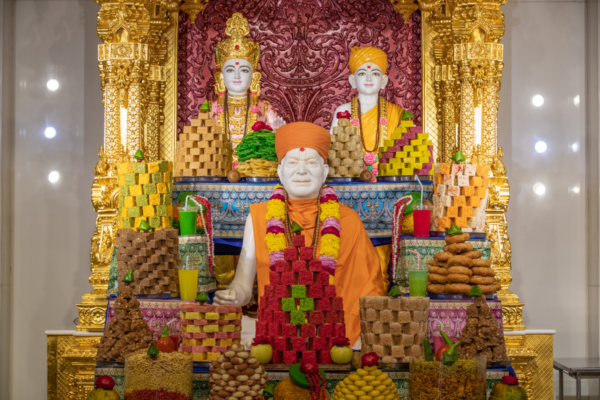 Swamishri offers thal to Shri Harikrishna Maharaj