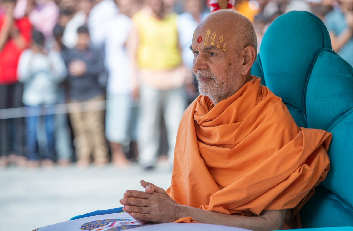 Swamishri engrossed in darshan of Brahmaswarup Bhagatji Maharaj