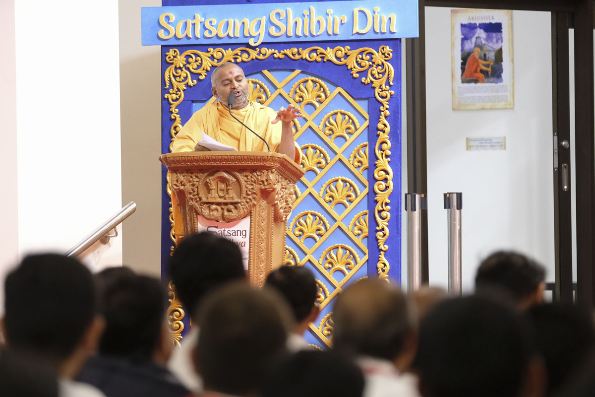 Pujya Bhaktipriya Swami (Pujya Kothari Swami) during a shibir session