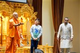 Shri Krishna's three qualities: Prempurush, Dharmapurush, and Gnanpurush, were highlighted throughout the celebration. The quality of Prempurush, meaning one who provides selfless love, covered the stories of the devotees who received selfless love from Bhagwan Shri Krishna. The quality of Dharmapurush, one who embodies and establishes righteousness, is reflected in a scene from the Mahabharat- when Bhagwan Shri Krishna intervened to save Draupadi while everyone else stood idle. Lastly, the quality of Gnanpurush, one who is knowledgeable, expanded on the richness of the Shrimad Bhagavad Gita and its guidance for the spiritual path and life's challenges. Bhagwan Shri Krishna explains in the Bhagavad Gita that Gnan (knowledge) is taught through the life and example of an ever-present form of Aksharbrahma, a real-life guru (satpurush).