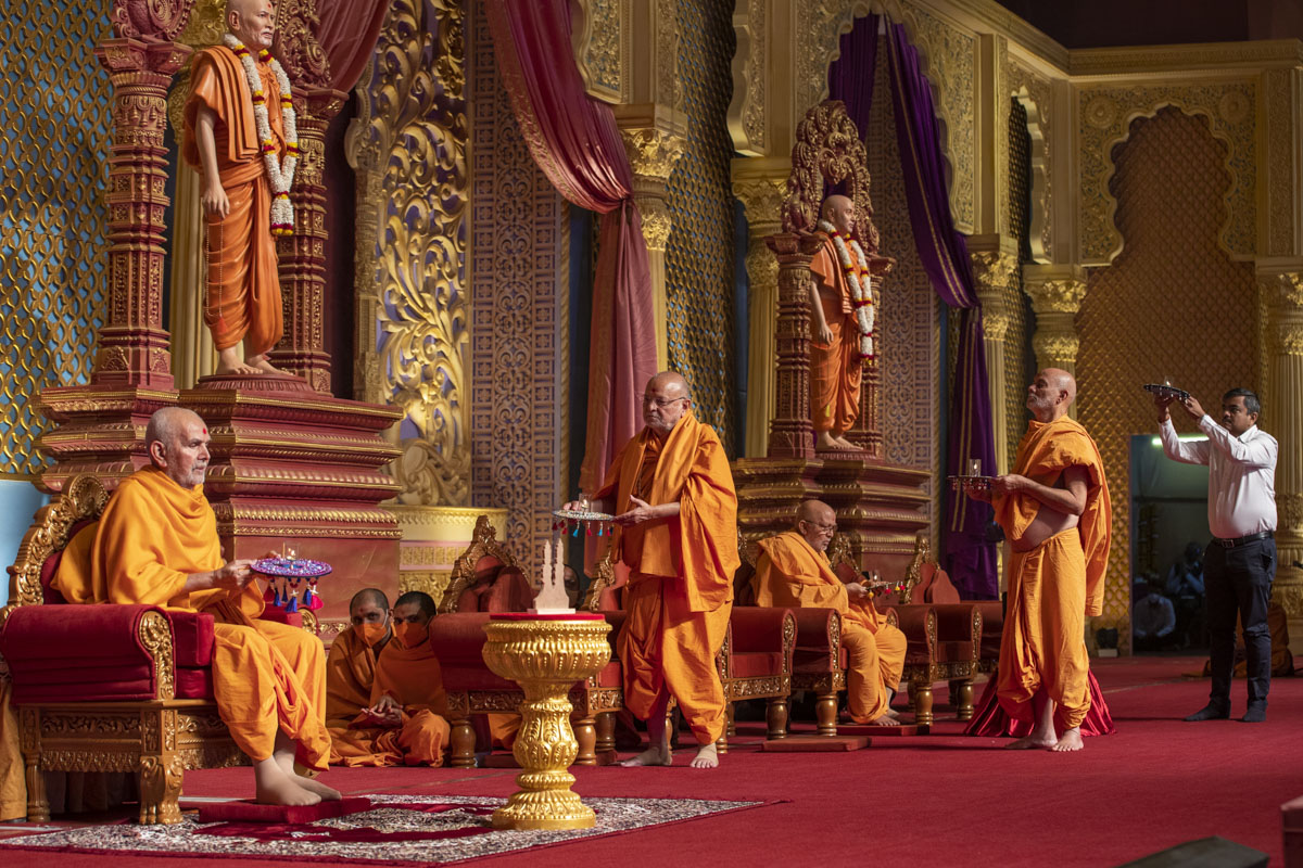 The evening programme concluded with His Holiness Mahant Swami Maharaj’s blessings. “We heard about the transformations of the millions through de-addiction programmes by Pramukh Swami Maharaj. He was so pure that he purified all who came into contact with him. Whoever connected with him transformed into a person who started living a clean and pure life. Pramukh Swami Maharaj taught us to live a beautiful life. A short but beautiful life has a strong positive impact on family and society. Identifying your own faults and working towards self-improvement is vital. Do not sully the purity of your soul in your race to acquire money and power. Being poor and pure is an infinitely better way of living. Only see good, do good, and wish good for all.”