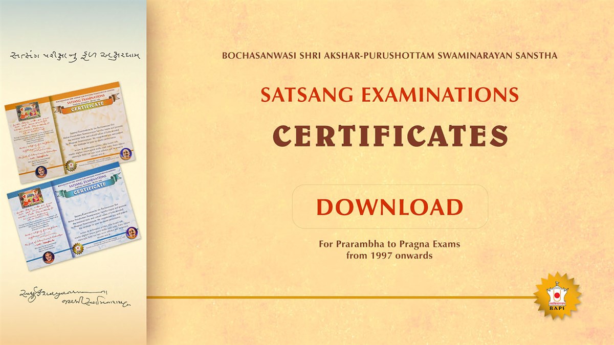 સત્સંગ શિક્ષણ પરીક્ષાના ડિજિટલ પ્રમાણપત્રો