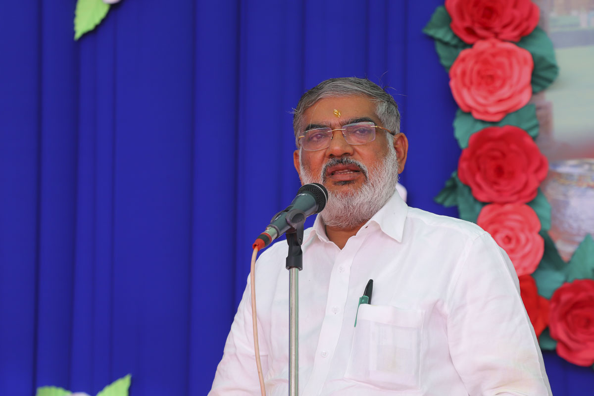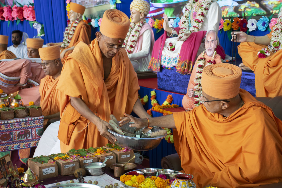 Groundbreaking Ceremony for New BAPS Vidyamandir, Jamnagar, performed in the presence of Gnaneshwar Swami; Shri Mulu Ayar Bera, Minister of Forest and Environment of Gujarat; Shri Divyesh Akbari, MP; Shri Rivaba Jadeja, MLA; Shri B.A. Shah, Collector, Jamnagar; and Shri D N Modi, Commissioner, Jamnagar.