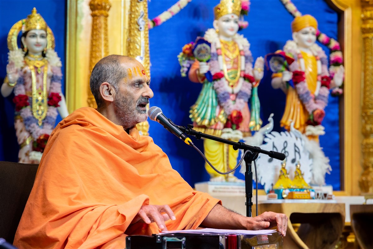 A highlight of the anniversary was the Murti Abhishek, a sacred ritual in which the murtis (sacred images) were ceremonially bathed with sanctified substances. This ritual symbolizes the purification and renewal of devotion, reaffirming the spiritual bond between devotees and the divine. Over ten swamis, including Pujya Shantmurtidas Swami, graced the occasion with their blessings, enriching the spiritual experience for all attendees.