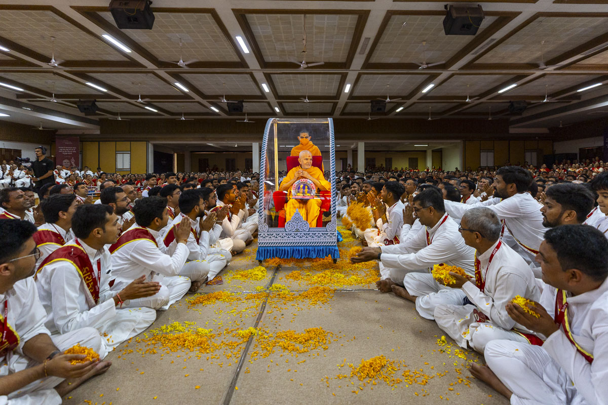 This year is being celebrated as the Karyakar Suvarna Mahotsav, which commemorates the 50th anniversary of the establishment of the BAPS Swaminarayan Sanstha’s satsang volunteer force. As part of this celebration, 1,700 senior volunteers from the BAPS Children’s Activities wing attended the special Divya Sannidhi Parva in the presence of Mahant Swami Maharaj.