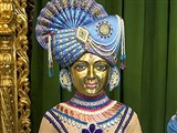 The adornment of the murti of Bhagwan Swaminarayan / Shri Harikrishna Maharaj with sandalwood paste ("chandan na wagha") is an annual feature in Swaminarayan mandirs, during the month of Vaishakh.
