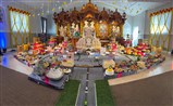 The grand Annakut offering was a centerpiece of the Diwali celebrations. The Annakut featured a wide array of vegetarian dishes and delicacies, symbolizing gratitude and devotion to the Divine. Volunteers, ranging from young children to seniors, dedicated their time to preparing the Annakut and helped set the stage for the celebration of this special festival. The Annakut is celebrated the day after Diwali, and for many Hindus, this day marks the beginning of the new year, thus the Annakut is also an offering of thanks to God and Guru for all one has received in the past year.