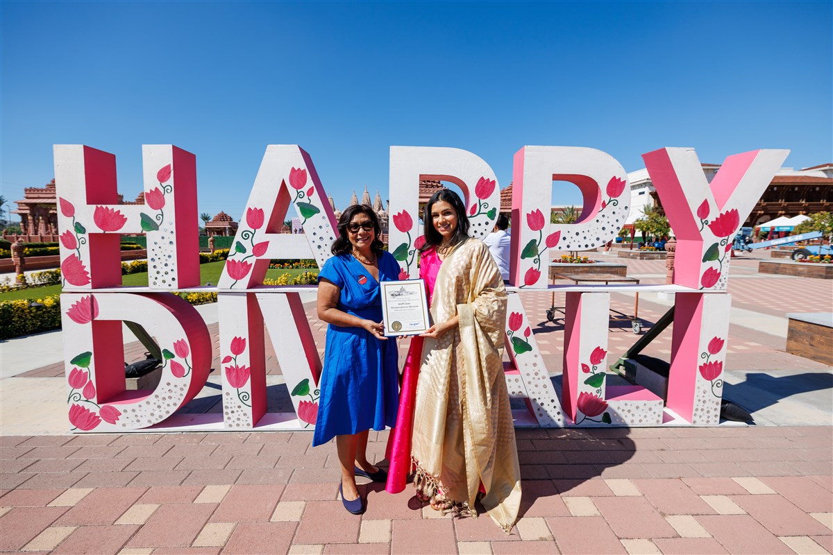 Congresswoman Norma Torres (CA-35) presents a Certificate of Recognition during the Diwali Celebration
