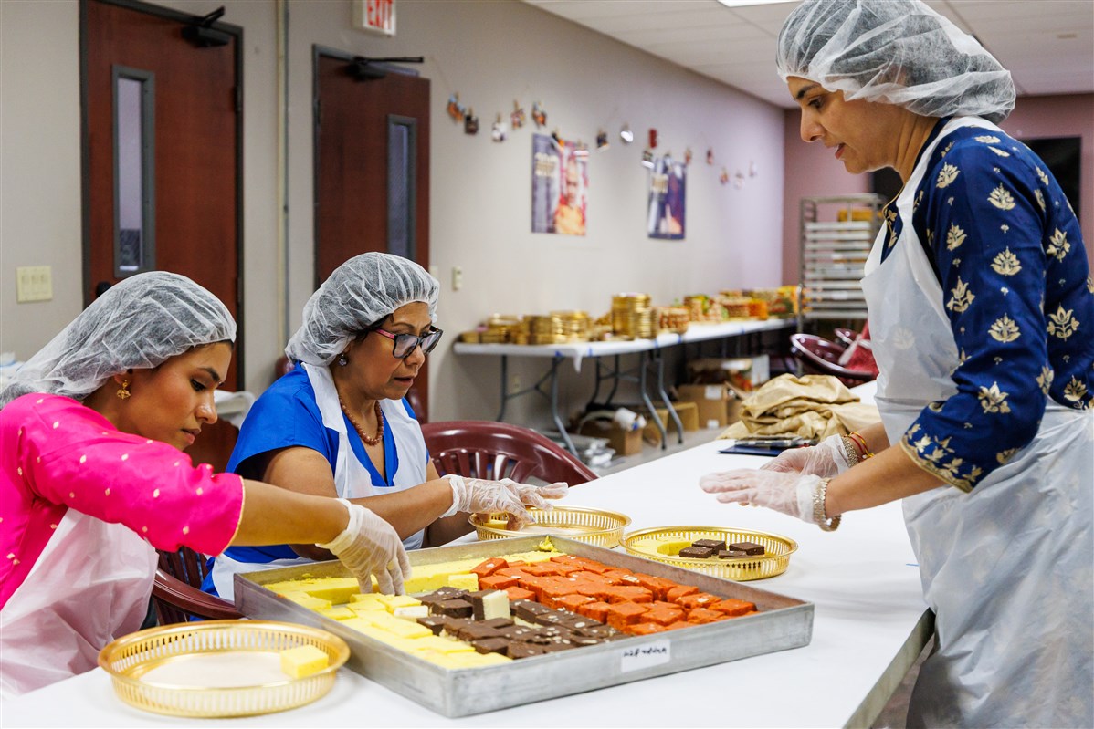Congresswoman Norma Torres (CA-35) joins BAPS volunteers in annakut preparation seva (selfless service) during Diwali and Annakut Celebration