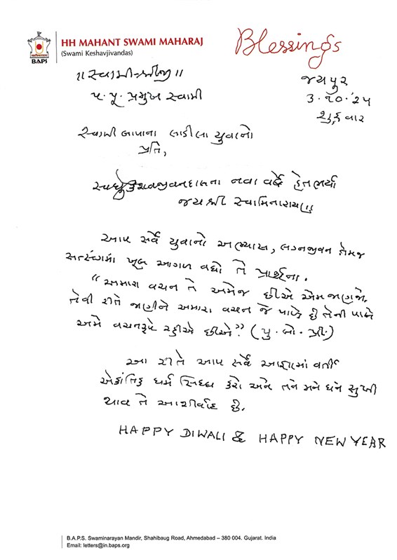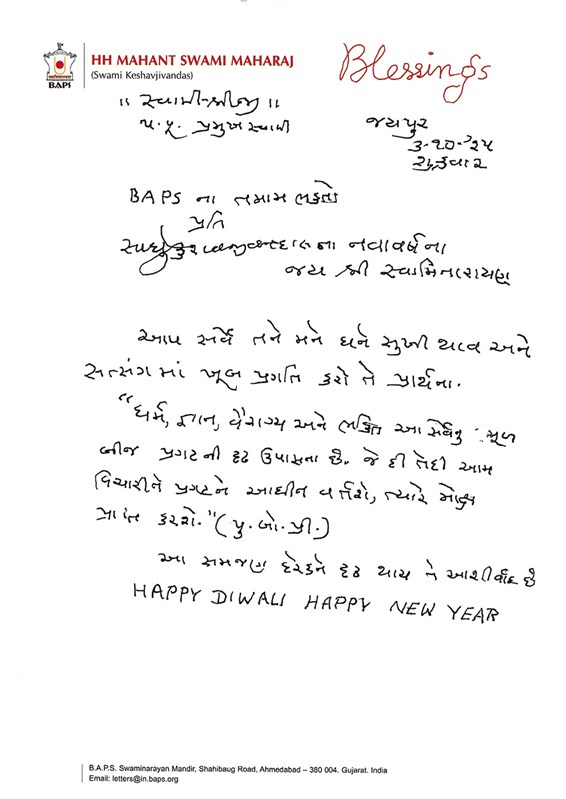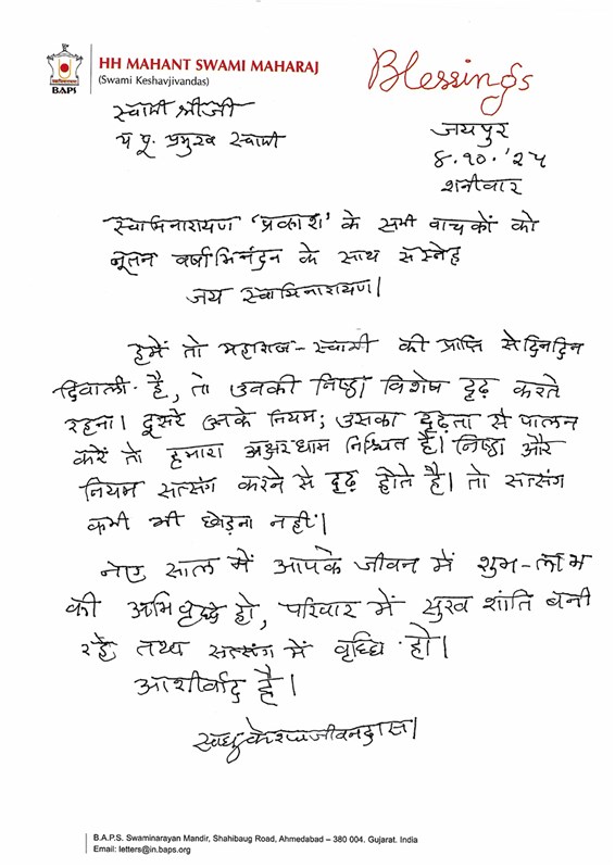 HH Mahant Swami Maharaj's New Year's Blessings 2025, Jaipur, India
