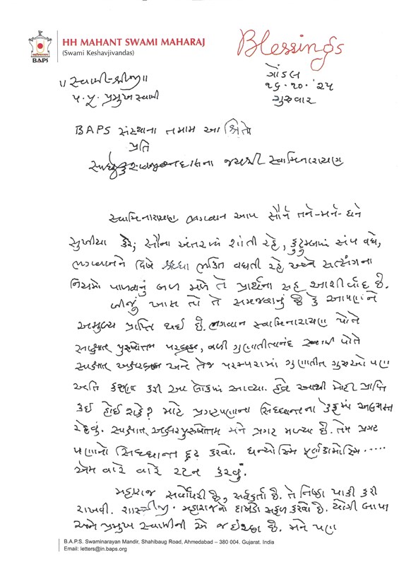HH Mahant Swami Maharaj's New Year's Blessings 2025, Gondal, India