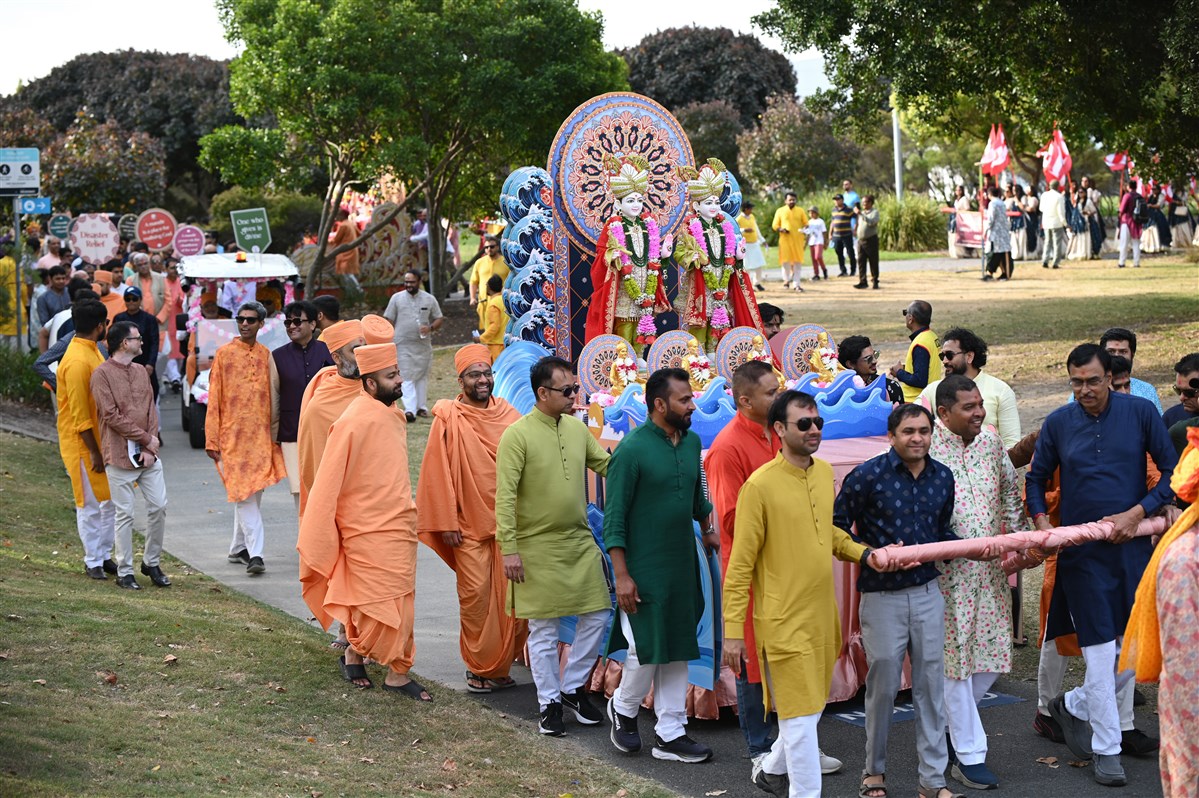 On 27 September, the murtis to be consecrated in the mandir were honored in a nagar yatra through Broadwater Parklands, Southport. The colorful procession featured beautifully decorated floats and enthusiastic participation from devotees and local residents. The chief guest was Hermann Vorster MP, Assistant Minister for Multicultural Affairs and International Student Attraction. Also present were Renata Jones from the Multicultural Families Organisation (MFO), officers from the Queensland Police Service, and Indian community leaders.