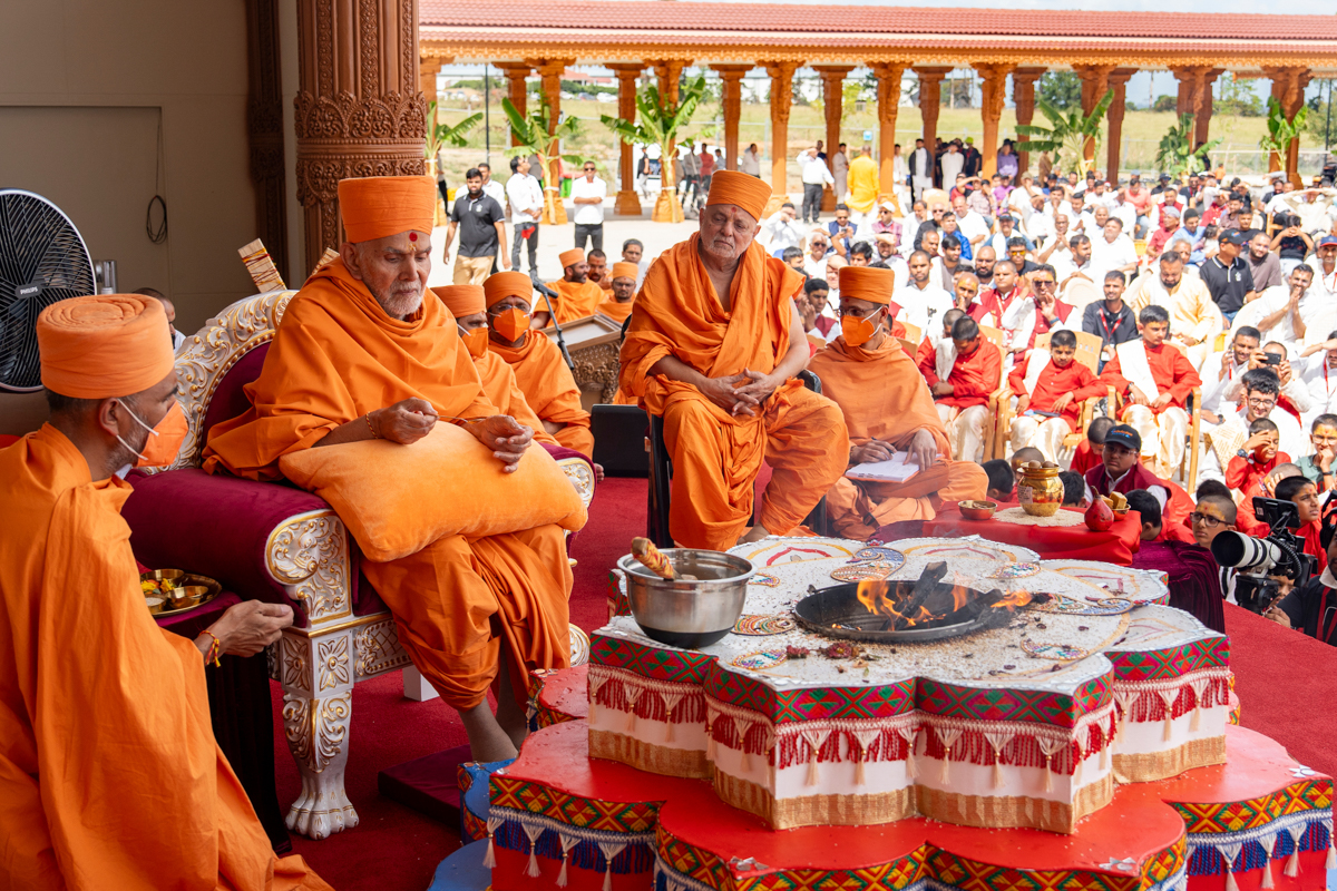 On the morning on 5 March, a Vedic Shri Swaminarayan Vishwa Shanti Mahayagna was organized for world peace and the well-being of society. Mahant Swami Maharaj commenced the yagna by lighting the auspicious ritual flame. Sanctified grains were offered in the ritual flame while over 330 children from Australia and New Zealand recited the 315 Sanskrit verses of the Satsang Diksha shastra. New South Wales Legislative Assembly Member for Leppington Mr. Nathan Hagarty was present for the ceremony.