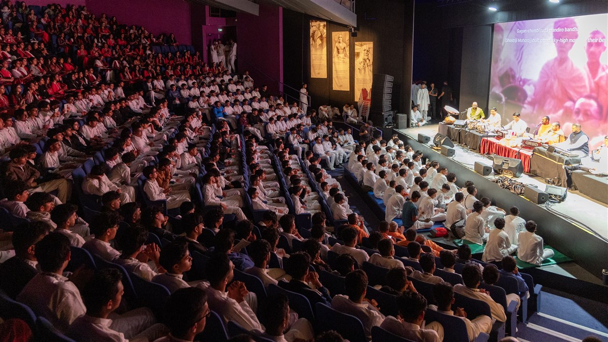The Sanyukta Shibir (for over-35s) was held twice – from 22 to 24 August and 24 to 26 August – to accommodate the more than 2,300 delegates. During the shibir, they were carried on a spiritual journey from vichār (understanding) to vishwās (faith), and priti (love), culminating in pratiti (unwavering conviction) of having attained Bhagwan Swaminarayan and the Gunatit Satpurush. In addition, over 300 children participated in the Satsang Diksha playgroups.
