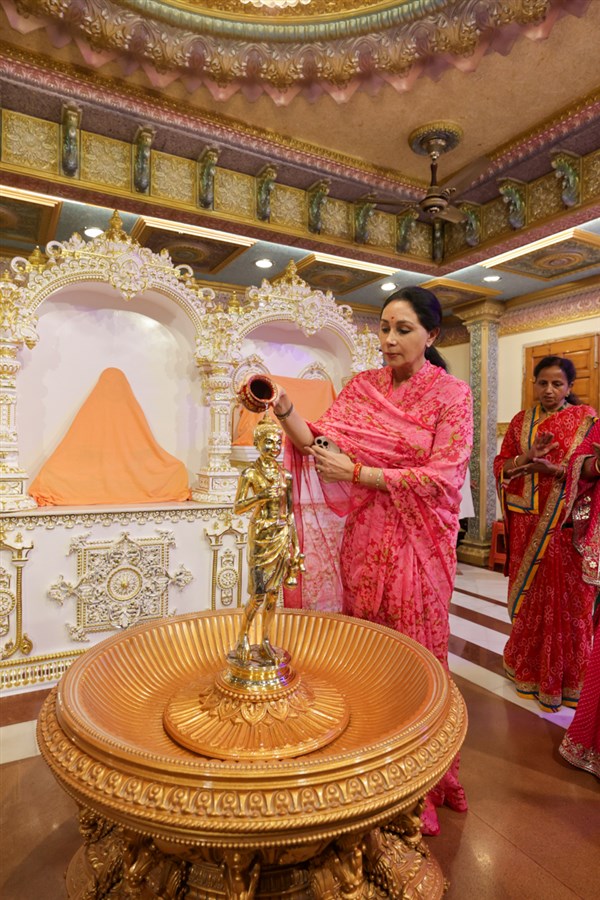 Shrimati Diya Kumari performs abhishek of Shri Nilkanth Varni