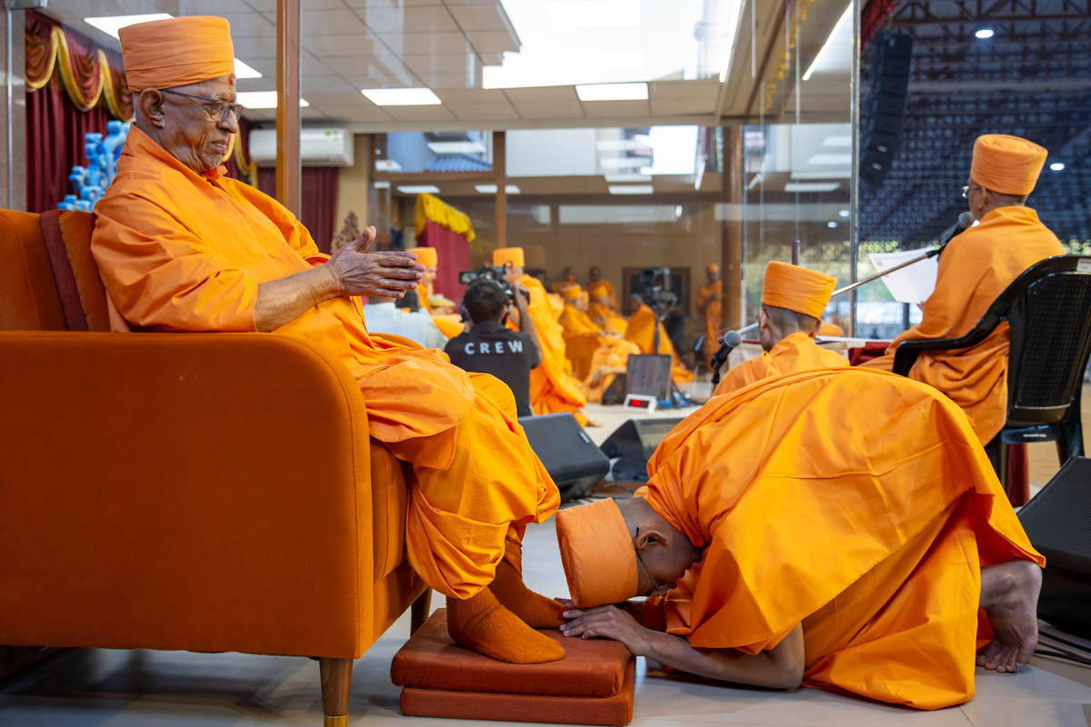 A newly initiated swami doing darshan of Pujya Doctor Swami