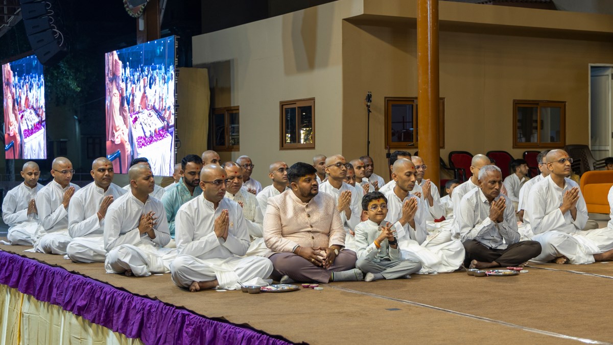 Sadhaks and their relatives perform the arti